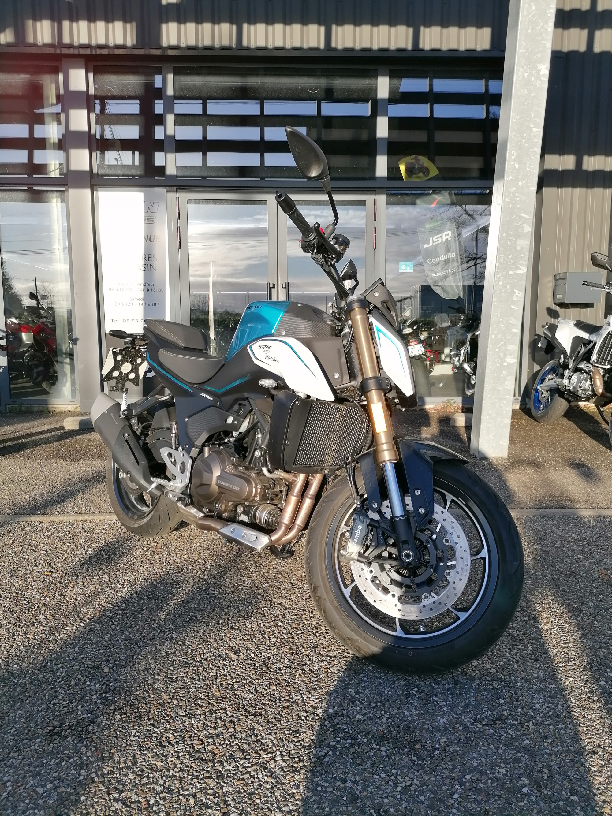 Moto d’occasion disponible en magasin, tarif de base 4500 € carte grise et frais de mise à la route en sus.